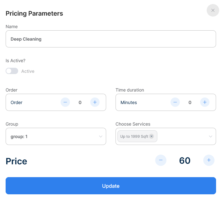 Select a pricing parameter and click on the edit icon