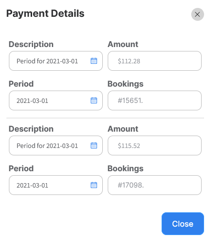 Total earned in a date range, adjustments made to the earnings, how much is due, how much has been paid